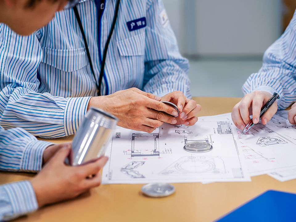 金属、紙、プラスチックといった素材の特性を理解し、低速から毎分2000個という高速まであらゆる速度領域で確実に製品を生み出す機械を作り上げる創造的な仕事です。各工程を担う仲間たちとのチームワークで作り上げた機械から、イメージ通りの製品が取り出された瞬間の達成感は格別です。